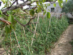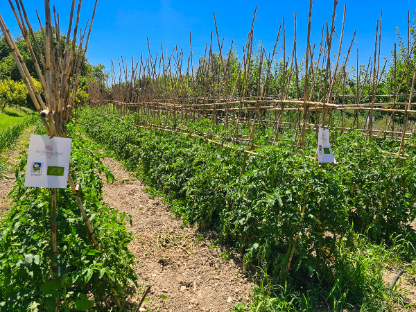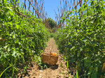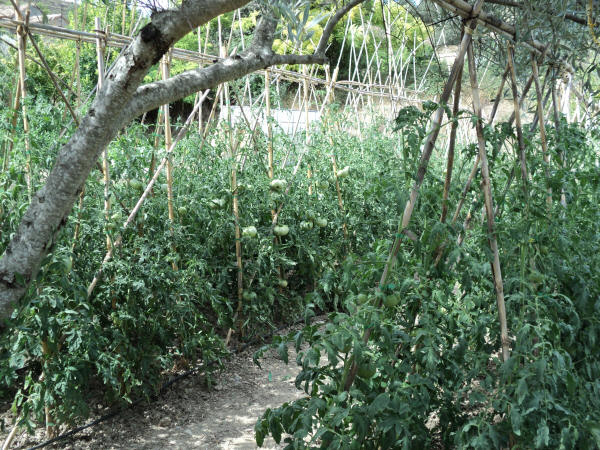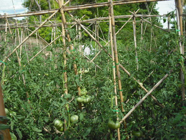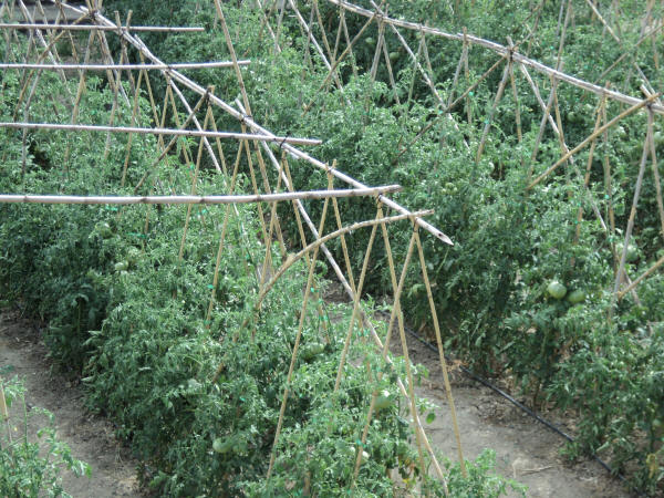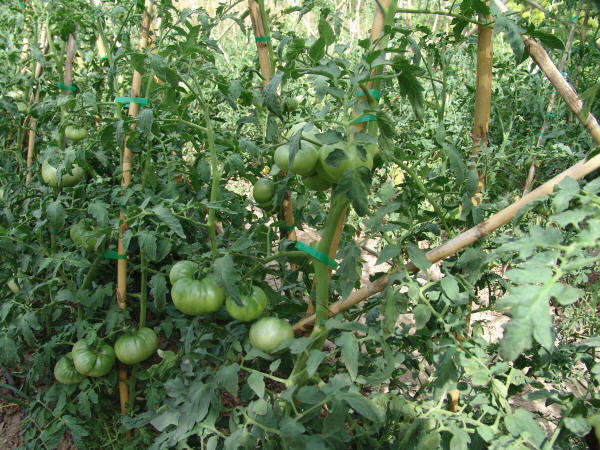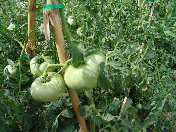 Nuestro Tomate Rosa es una planta de raíces sensibles y su cultivo exige rigurosos cuidados diarios (escardado, desyerbado, atado y empalado ).